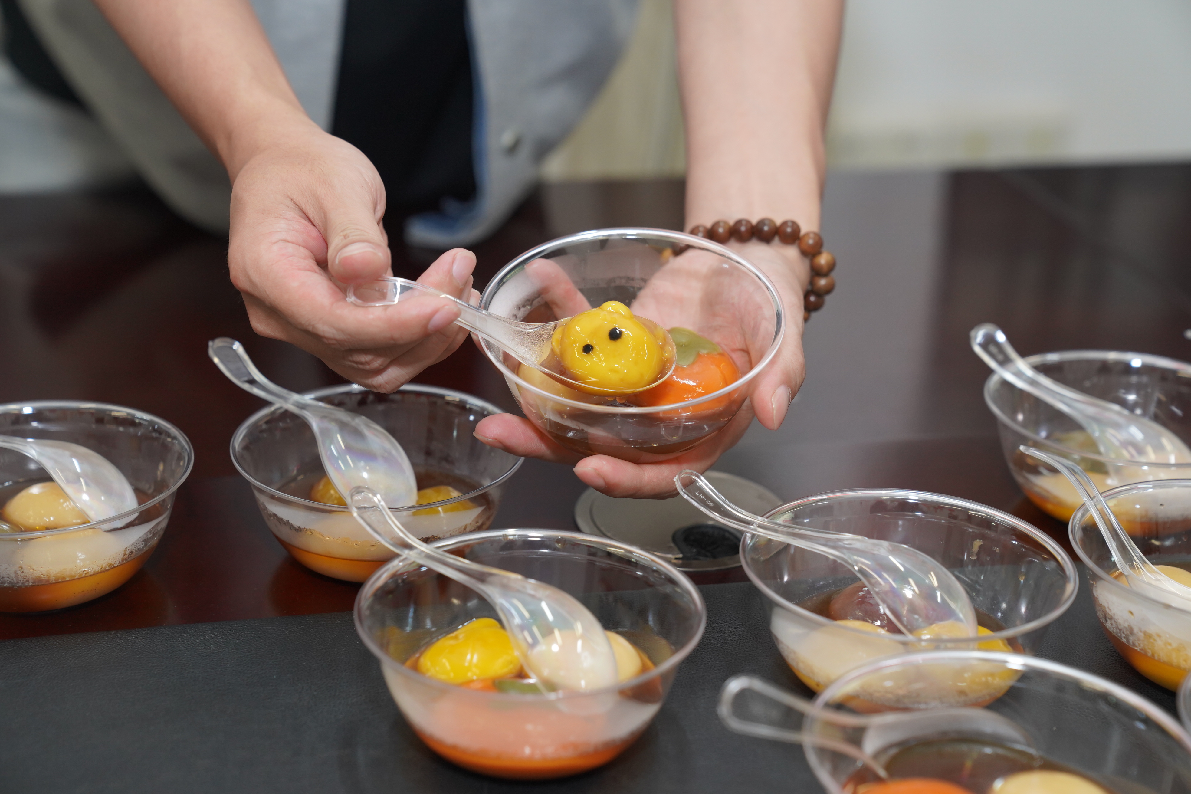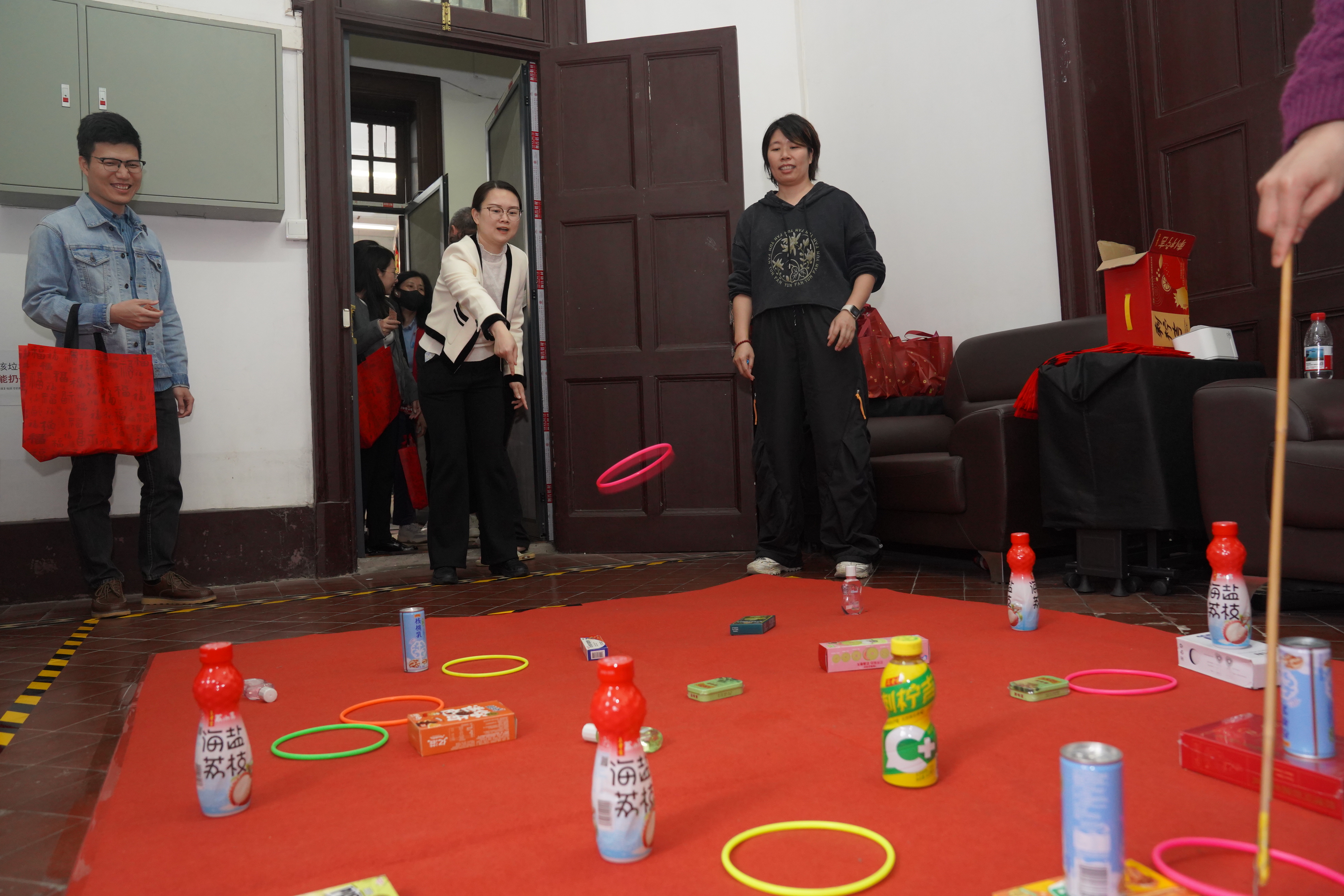 活动现场洋溢着节日的喜庆氛围。五颜六色的灯谜随风摇曳,三五成群的身影围成一圈,有人皱眉思索,有人恍然大悟;旁边的“百步穿杨”“圈乐无穷”“马上同心”等游戏区,欢笑声一阵高过一阵。手作棉花糖、漆扇制作环节也备受青睐,大家纷纷挽起袖子,亲手体验传统手艺的魅力。此外,活动还将安全生产知识和党纪学习内容巧妙地编入游戏,主打一个“让知识以快乐的方式进入你的脑子”。职工们或参与游戏,或围在一起品尝着香甜的汤圆,欢声笑语不断,展现了海马&创赢公司大家庭的温暖与和谐。